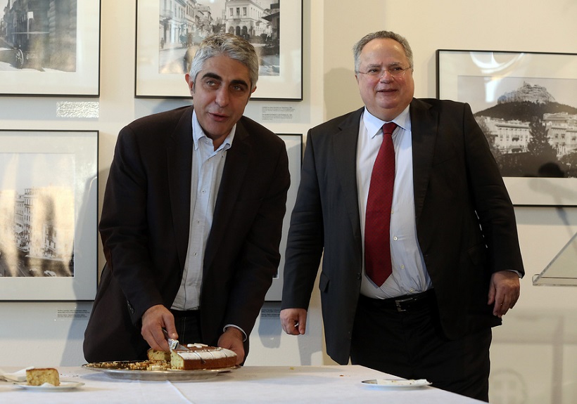 Ο Γιώργος Τσίπρας με τον πρώην ΥΠΕΞ Νίκο Κοτζιά στην κοπή της πρωτοχρονιάτικης πίτας του υπουργείου Εξωτερικών όταν ο πρώτος ήταν ακόμα γγ εκεί (φωτ.: ΑΠΕ-ΜΠΕ / Συμέλα Παντζαρτζή)