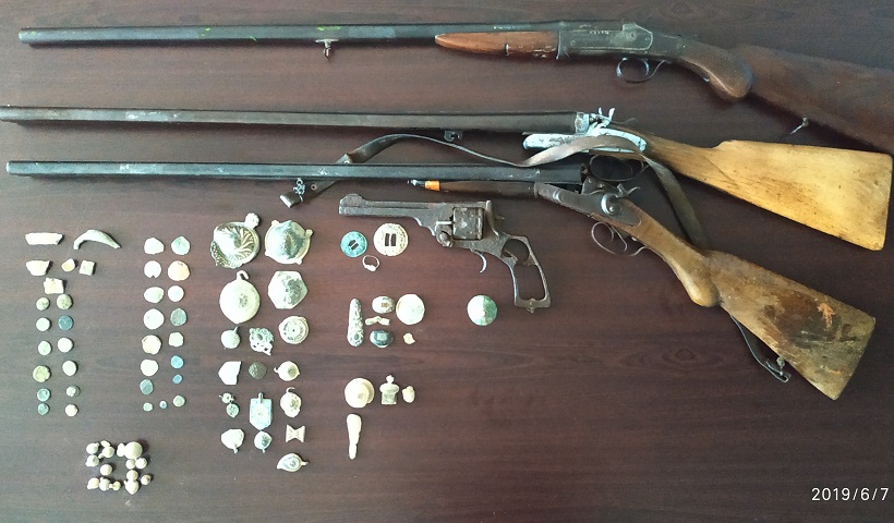Από την εξέλιξη της προανάκρισης προέκυψε η εμπλοκή στην υπόθεση και του δεύτερου ατόμου, στην οικία του οποίου βρέθηκαν και κατασχέθηκαν δύο δίκαννα κυνηγετικά τυφέκια, μονόκαννο κυνηγετικό τυφέκιο και παλαιό εξάσφαιρο περίστροφο, για τα οποία δεν κατείχε σχετική άδεια και συνελήφθη. Οι συλληφθέντες, με τη δικογραφία που σχηματίστηκε σε βάρος τους, οδηγήθηκαν στην αρμόδια Εισαγγελική Αρχή. Τα κατασχεθέντα όπλα θα αποσταλούν στην Υποδιεύθυνση Εγκληματολογικών Ερευνών Βορείου Ελλάδος για περαιτέρω εργαστηριακή διερεύνηση, ενώ τα κατασχεθέντα αρχαία αντικείμενα θα αποσταλούν στην αρμόδια Εφορεία Αρχαιοτήτων για περαιτέρω αξιολόγηση.