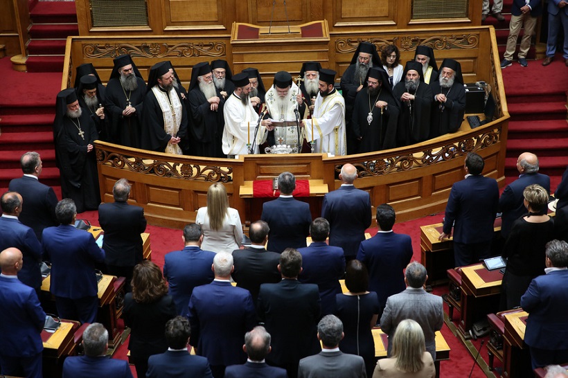 Με κάθε επισημότητα και παρουσία του Αρχιεπισκόπου Αθηνών και πάσης Ελλάδος Ιερώνυμου πραγματοποιήθηκε σήμερα η ορκωμοσία των 300 βουλευτών που απαρτίζουν τη 18η Σύνοδο της Βουλής. Τον καθιερωμένο Αγιασμό και την ορκωμοσία τέλεσε ο Αρχιεπίσκοπος και τα μέλη της Ιεράς Συνόδου.