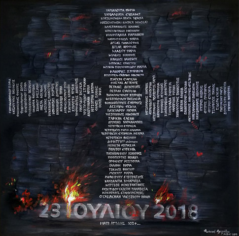 «Φτάνοντας είδα αυτές τις τεράστιες φλόγες να ξεπηδούν μέσα από τον οικισμό και να καίνε ολοκληρωτικά τα σπίτια. Μπήκα σε μια ακτίνα γύρω στα 150 μέτρα με δυνατή φωτιά. Κατευθύνθηκα προς το σπίτι μου, είδα το αυτοκίνητό μου να καίγεται. Δεν έδωσα σημασία σ’ αυτό, αλλά στο εξοχικό των γονιών μου. Ταυτόχρονα έβλεπα πολλά σπίτια στον οικισμό να φλέγονται.
