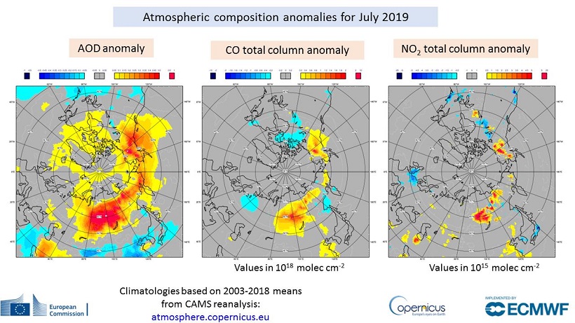 Από τον Ιούνιο σε όλες τις πυρκαγιές στον Αρκτικό Κύκλο (Σιβηρία, Αλάσκα, Βόρειος Καναδάς) εκλύθηκαν 50 μεγατόνοι διοξειδίου, που ισοδυναμεί με την ετήσια κατανάλωση άνθρακα της Σουηδίας. Στις 7 Ιουλίου καταγράφηκαν θερμοκρασίες ρεκόρ 32 βαθμών Κελσίου στην Αλάσκα, παράγοντας που υποβοήθησε την επέκταση των πυρκαγιών, που σύμφωνα με τους ειδικούς θα απανθρακώσουν περισσότερα από 30 εκατ. στρέματα δάσους.