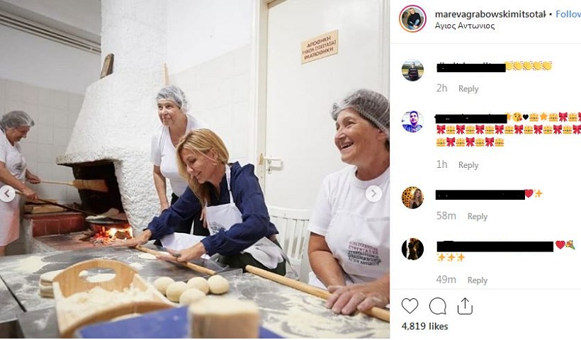 Η Μαρέβα Μητσοτάκη, μάλιστα, έβαλε ποδιά και άνοιξε φύλλο μαζί με τις γυναίκες του συνεταιρισμού, ενώ ανέβασε και το χαρακτηριστικό φωτογραφικό στιγμιότυπο στον προσωπικό της λογαριασμό στο Instagram.