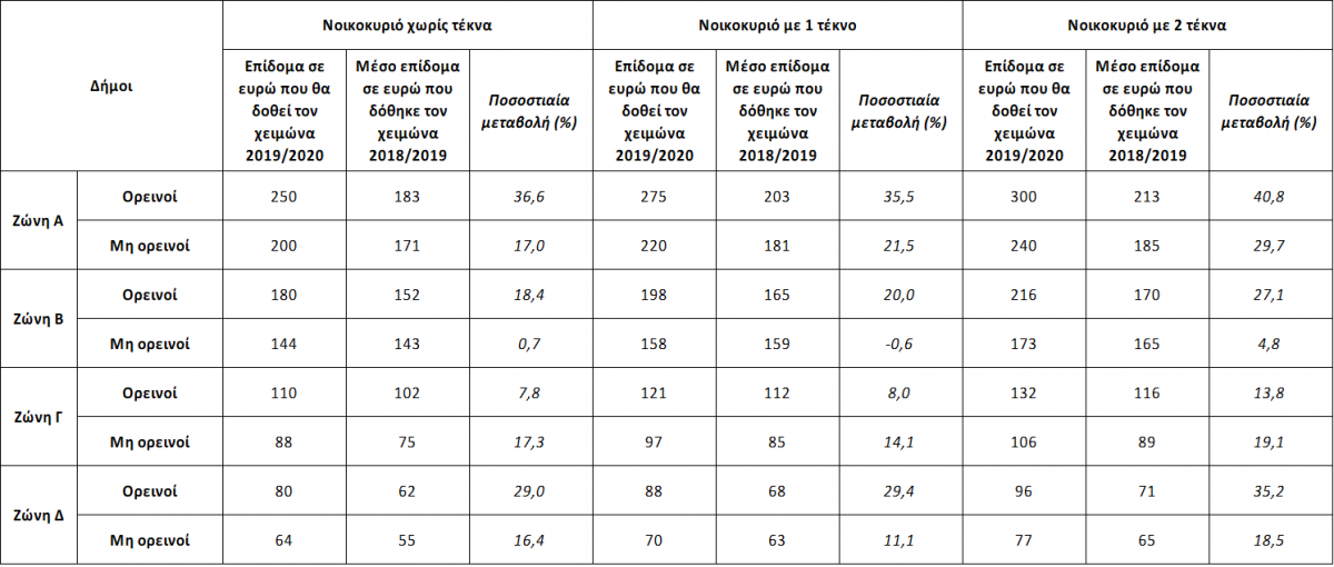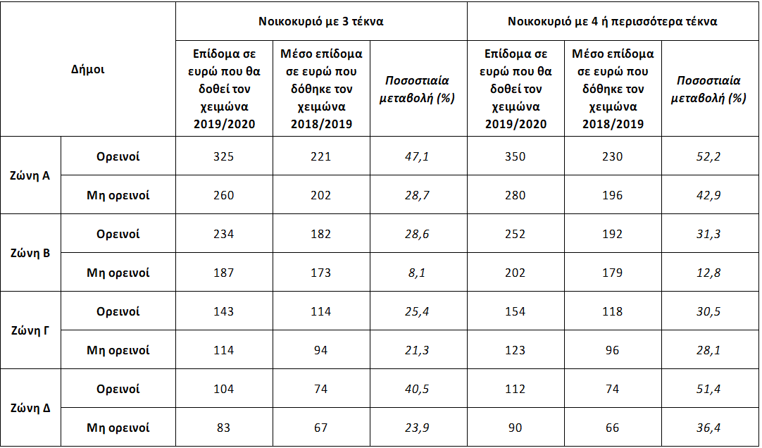 Τον περσινό χειμώνα είχε δοθεί επίδομα ύψους 0,16 ευρώ ανά λίτρο πετρελαίου και υπήρχαν συγκεκριμένα όρια κατανάλωσης με βάση τα τετραγωνικά της κατοικίας και την γεωγραφική ζώνη.