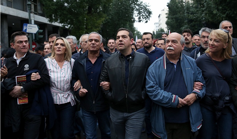 Επικεφαλής στο μπλοκ του ΣΥΡΙΖΑ ήταν ο πρόεδρος του κόμματος Αλέξης Τσίπρας, έχοντας δίπλα του τον Νίκο Βούτση, τον Πάνο Σκουρλέτη, την Ρένα Δούρου και άλλα στελέχη του κόμματος.