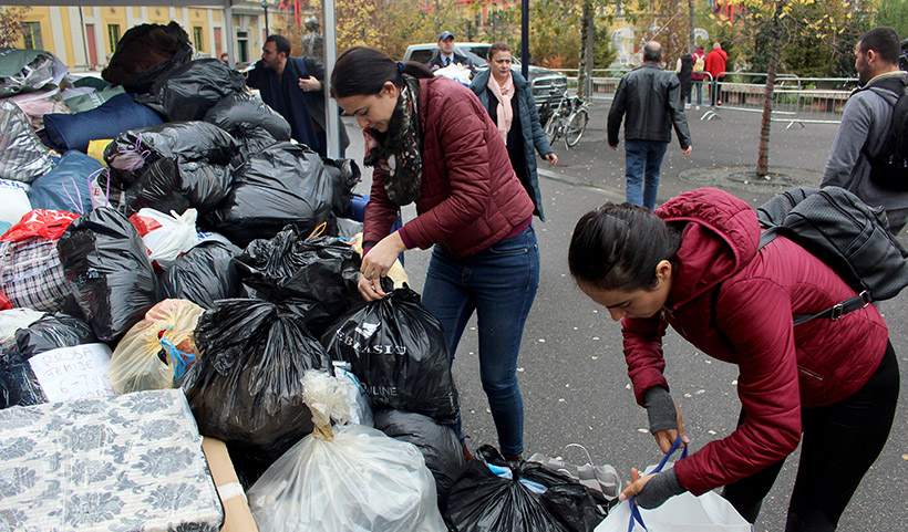 Ένα κύμα αλληλεγγύης πλημμυρίζει τους σεισμόπληκτους. Παντού μοιράζονται ρούχα, ενώ κάποιοι πήραν την πρωτοβουλία και προσφέρουν φαγητό. Από σήμερα στο κέντρο του Δυρραχίου δύο κινητά μαγειρεία του Ελληνικού Στρατού που έφτασαν χθες το απόγευμα με C-130 θα προσφέρουν 300 μερίδες φαγητού μεσημέρι και βράδυ. Οι Αλβανοί σε κάθε βήμα ευχαριστούν τους Έλληνες. Μιλάνε τη γλώσσα μας γιατί έχουν δουλέψει χρόνια στη χώρα μας, και όπως μας λένε είναι μια δεύτερη πατρίδα γι’ αυτούς.