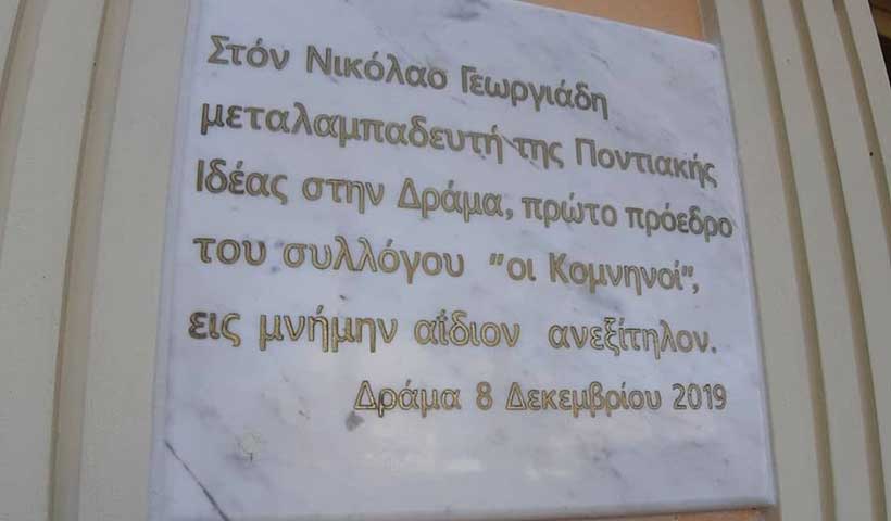 Ο Σύλλογος Ποντίων Δράμας «Οι Κομνηνοί» πραγματοποίησε το διήμερο 7 και 8 Δεκεμβρίου εκδηλώσεις προς τιμήν του ιδρυτή και πρώτου προέδρου του σωματείου, Νικόλαου Γεωργιάδη.