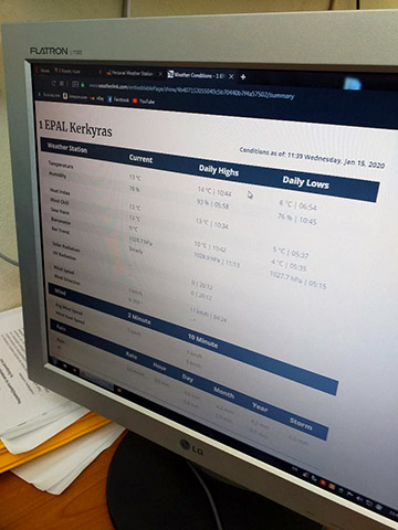«Ο μετεωρολογικός σταθμός του 1ου ΕΠΑΛ Κέρκυρας δεν έχει να ζηλέψει τίποτε από τους σταθμούς που χρησιμοποιεί το Εθνικό Αστεροσκοπείο Αθηνών, καθώς είναι υψηλών δυνατοτήτων. Θα μπορούσαμε να δώσουμε τα δεδομένα και αυτά να χρησιμοποιούνται για την πρόγνωση του καιρού», λέει.