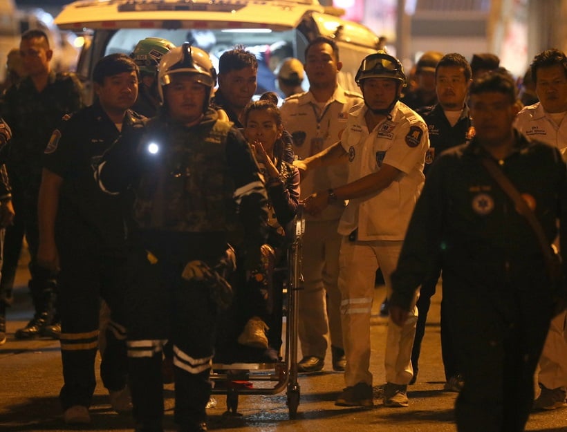 Ταϊλανδή κάθεται σε αναπηρική πολυθρόνα μετά τη διάσωσή της στο εμπορικό κέντρο της Ναχόν Ρατσασίμα (φωτ.: EPA / NARONG SANGNAK)