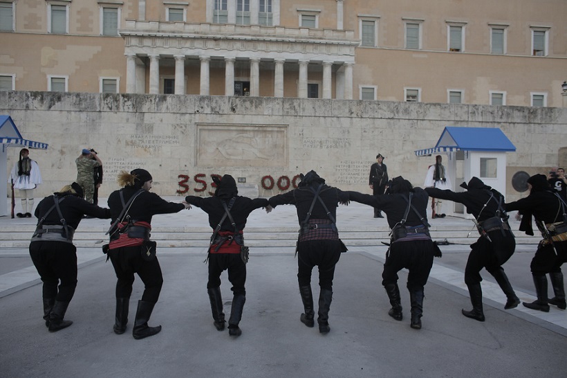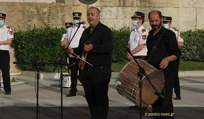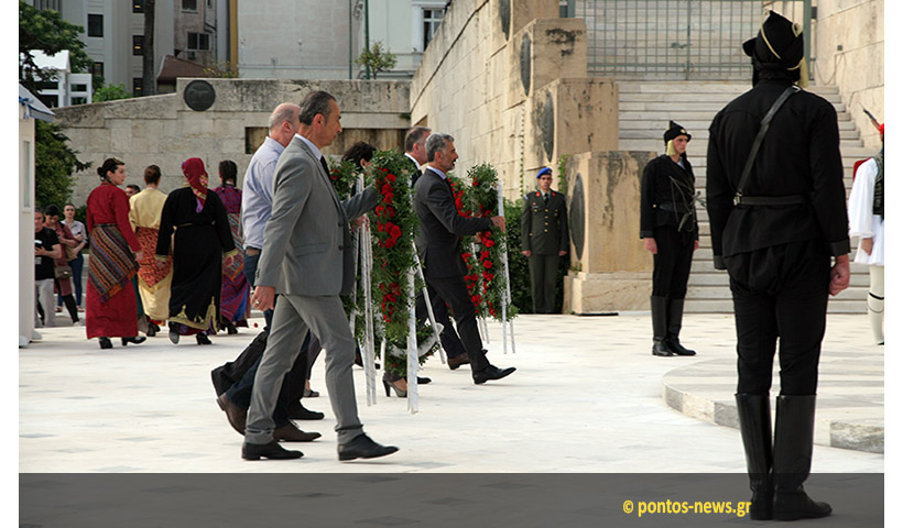 Η εκδήλωση στο Σύνταγμα ήταν λιτή και σεμνή όπως ακριβώς είχε προαναγγελθεί. Στις 19:00 έγινε η αλλαγή φρουράς με Πόντιους Εύζωνες που κάθε χρόνο συγκεντρώνει το ενδιαφέρον του κόσμου και αποσπά το πιο δυνατό χειροκρότημα καθώς σκορπά ρίγη συγκίνησης. Αφού έγινε ητης αλλαγής, ο λυράρης Ηλίας Υφαντίδης και ο ταουλτζής Παναγιώτης Κοπαλίδης έπαιζαν την ωδή προς τον Άγνωστο Στρατιώτη, το «Αητέντς επαραπέτανεν».