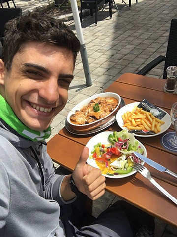 Και μπορεί τα 3.500 χλμ πάνω στο ποδήλατο να ισοδυναμούν με πολλές ώρες εξάσκησης σε κάποιο γυμναστήριο, ωστόσο η άθληση φαίνεται πως είναι στο DNA της οικογένειας Παπαδημητρίου, αφού μετά την πρώτη μέρα ξεκούρασης ακολούθησε γερή… προπόνηση. «Χθες ήταν η πρώτη μέρα που ξεκουράστηκα, και μόλις γύρισε ο μπαμπάς μου από τη δουλειά κάναμε όλοι μαζί [σ.σ.: η μητέρα του είναι τριαθλήτρια] στο υπόστεγο… γυμναστική για δύο ώρες», λέει ο 20χρονος.