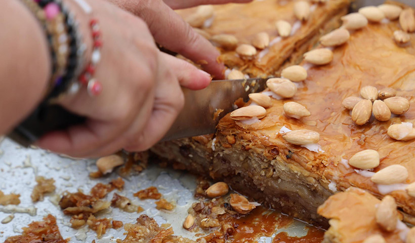 «Παστουρμαδόπιτες, λελέκια (τηγανητές πίτες με γέμιση), σαλάτες με παντζάρι και γιαούρτι, ας (πλιγούρι με κρέας), σουτζουκάκια σμυρναίικα, σαρμαδάκια, και φυσικά τα γλυκά όπως το ισλί, το σαραγλί και κορυφαίο τη φυλλωτή, τη γνωστή βασιλόπιτα, η οποία έχει 40 φύλλα με καρύδι, κανέλλα, αμύγδαλα, ζάχαρη και άλλα μυρωδικά», ήταν μόνο μερικά από τα εδέσματα που ετοίμασαν οι κυρίες του συλλόγου και περιέγραψαν η Ελένη Χασαπάκη και η Ράνια Βερνή.