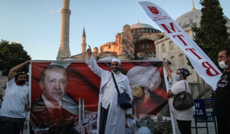 Η Αγία Σοφία με το θρύλο που την περιβάλει διεκδικεί τα πρωτεία από το τέμενος Αλ Ακσά στην Ιερουσαλήμ (τρίτος ιερός τόπος των μουσουλμάνων), το οποίο ελέγχεται από τη Σαουδική Αραβία, αντίπαλο της Τουρκίας στη διαμάχη για την επικράτηση στον σουνιτικό κόσμο. Η Αγία Σοφία ως τέμενος «πλήττει» τη Σαουδική Αραβία που δεν τα βρήκε με τη Ρωσία και Ιράν – έτσι η Τουρκία γίνεται πιο ελκυστική για τους Ιρανούς και τον Πούτιν, παρά τις κόνξες του Ερντογάν.