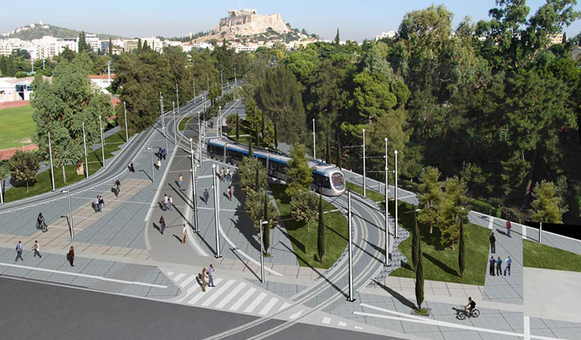 - Οι γραμμές ανόδου και καθόδου του τραμ από και προς το Σύνταγμα. Η λωρίδα καθόδου, που θα χρησιμοποιείται επίσης για την είσοδο και έξοδο επιβατικών ΙΧ αυτοκινήτων προς και από τον Όμιλο Αντισφαιρίσεως Αθηνών και για τη διέλευση οχημάτων κοινής ωφέλειας.