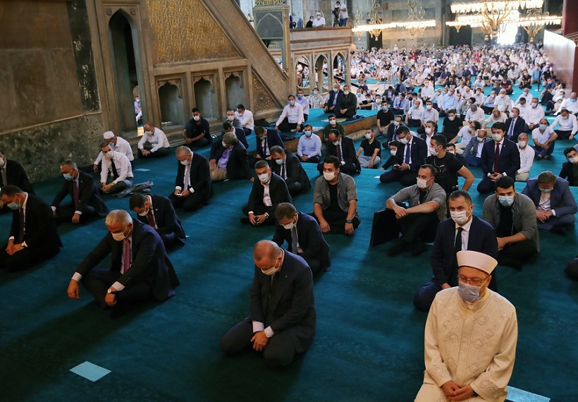 Ο Τούρκος πρόεδρος ενώ προσεύχεται στην Αγία Σοφία στην Κωνσταντινούπολη (φωτ.: Γραφείο Προεδρίας της Τουρκίας)