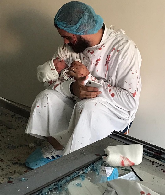 «Δεν ξέραμε τι πραγματικά συνέβη. Όλα γύρω μας ήταν κατεστραμμένα, αίμα και τραυματίες παντού», λέει ο νεαρός πατέρας, ο οποίος το μόνο που σκεφτόταν εκείνη τη στιγμή ήταν να μεταφέρει τη σύζυγο και τον γιο του σε άλλο νοσοκομείο που δεν είχε πληγεί από την έκρηξη.