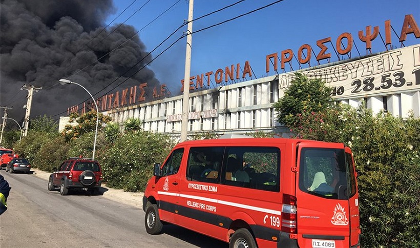 Στόχος είναι να περιοριστεί η φωτιά στο εργοστάσιο και να μην επεκταθεί σε άλλα κτήρια, κάτι ιδιαιτέρως δύσκολο.
