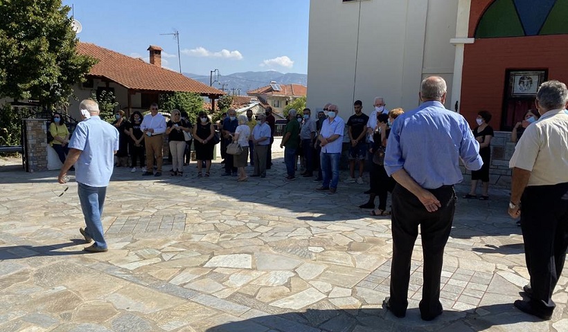 Συγγενείς και φίλοι έξω από το ναό των Αγίων Αναργύρων στην Αετοράχη (φωτ.: onlarissa.gr)