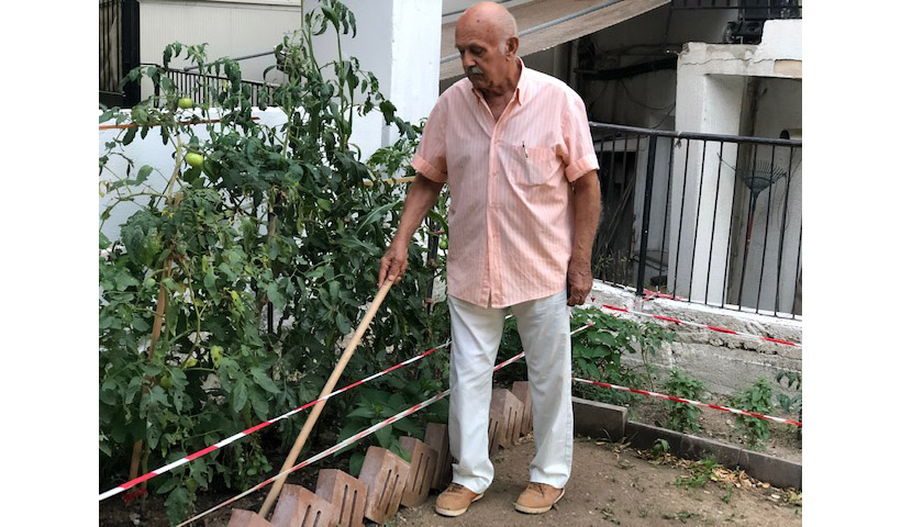 Ο «κηπουρός» της παρέας είναι ο Παναγιώτης Θεοδοσιάδης. «Εγώ ανέλαβα τον κήπο από την ημέρα που ξεκινήσαμε. Έχουμε αγγουράκια, ντομάτες, πιπεριές καυτερές, και την ημέρα που γιόρταζε ο Άγιος Παντελεήμων, η εκκλησία μας, μαζευτήκαμε εδώ και κεραστήκαμε. Έρχομαι κάθε πρωί, μεσημέρι και απόγευμα για να προσέχω τον κήπο, καθώς θέλουν φροντίδα τα φυτά», μας λέει.