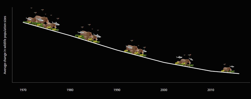 Από το 1970 έως το 2016 εξαφανίστηκε το 68% αυτής της άγριας πανίδας, σύμφωνα με τον Δείκτη Ζωντανός Πλανήτης, εργαλείο αναφοράς που δημοσιεύεται κάθε δύο χρόνια από το WWF.
