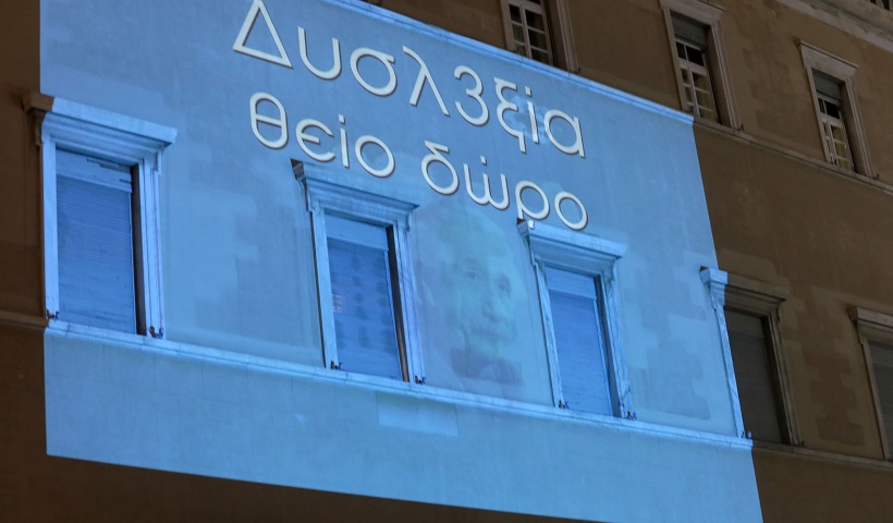 Ευρωπαϊκή Ημέρα Ευαισθητοποίησης για τη Δυσλεξία σήμερα και η πρόσοψη του κτηρίου της Βουλής φωταγωγήθηκε με το σύνθημα «Δυσλ3ξία – Θείο Δώρο», σε συμβολικό μπλε-τιρκουάζ φόντο, ως ένδειξη στήριξης και ενθάρρυνσης της συνεχούς προσπάθειας των  δυσλεξικών να ξεπεράσουν τις δυσκολίες που αντιμετωπίζουν.