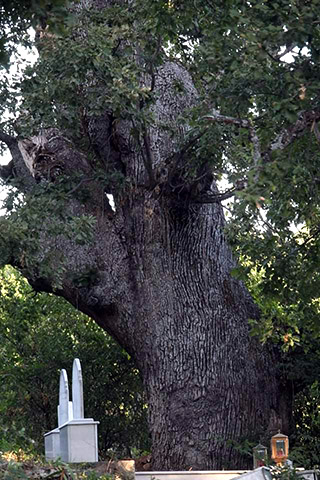 Θεωρείται βέβαιο, πάντως, ότι η βελανιδιά που είναι μέσα στο κοιμητήριο μαζί με τις άλλες τρεις που βρίσκονται στη βόρεια πλευρά του ναού αποτελούσαν μια ενότητα μαζί και με τις δύο που έχουν κοπεί. «Πρόκειται για μοναδικά αιωνόβιες βελανιδιές, τις οποίες ανταγωνίζονται μόνο άλλα είδη καστανιών, όχι βελανιδιών, που πρέπει να είναι υπερχιλιετείς και βρίσκονται σε διάφορα σημεία του δασοκτήματος», προσθέτει ο Ι. Κίτης.