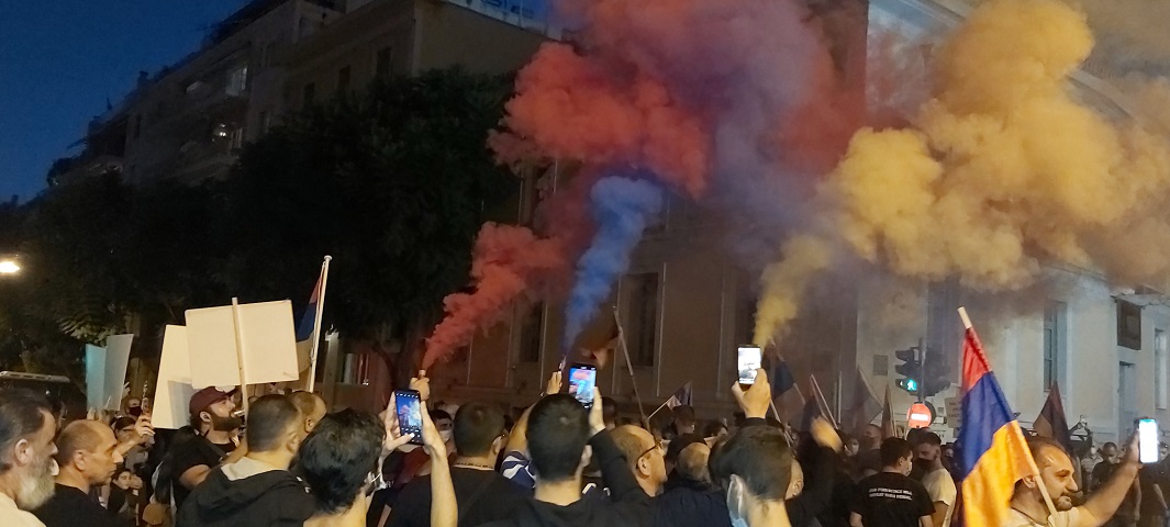 Συγκέντρωση στο Σύνταγμα και πορεία προς την πρεσβεία της Τουρκίας στην Αθήνα πραγματοποίησαν το απόγευμα της Τετάρτης Αρμένιοι και Έλληνες που έδωσαν το παρών στο κάλεσμα της Αρμενικής Νεολαίας Ελλάδας. Στόχος να εκφραστεί η στήριξη και η αλληλεγγύη στον αρμενικό λαό που κατοικεί στις Δημοκρατίες της Αρμενίας και του Αρτσάχ (Ναγκόρνο Καραμπάχ).