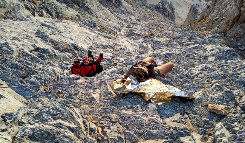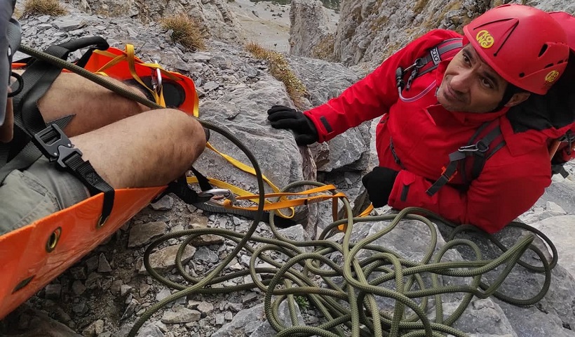 Και συνεχίζει την αφήγησή του: «Το μεγάλο επικλινές του εδάφους έκανε ακόμη πιο δύσκολη την μεταφορά μέσα στο φορείο. Οι πτώσεις μου στα γλιστερά και κοφτερά βράχια του Ολύμπου συχνές. Γόνατα, κνήμες, γοφοί, οι αποδέκτες και… αποσβεστήρες των πτώσεων μου. Κύριο μέλημά μου ήταν οι πτώσεις μου να μην περάσουν στο φορείο και τον τραυματία. Η πολύωρη επιχείρηση μου δημιούργησε σκαμπανεβάσματα καρδιακών παλμών και μικρές κράμπες. Όλα αυτά εξαφανίστηκαν με τη θέα του ελικοπτέρου που ως σωτήρας εμφανίστηκε πάνω από το θρόνο του Δία».