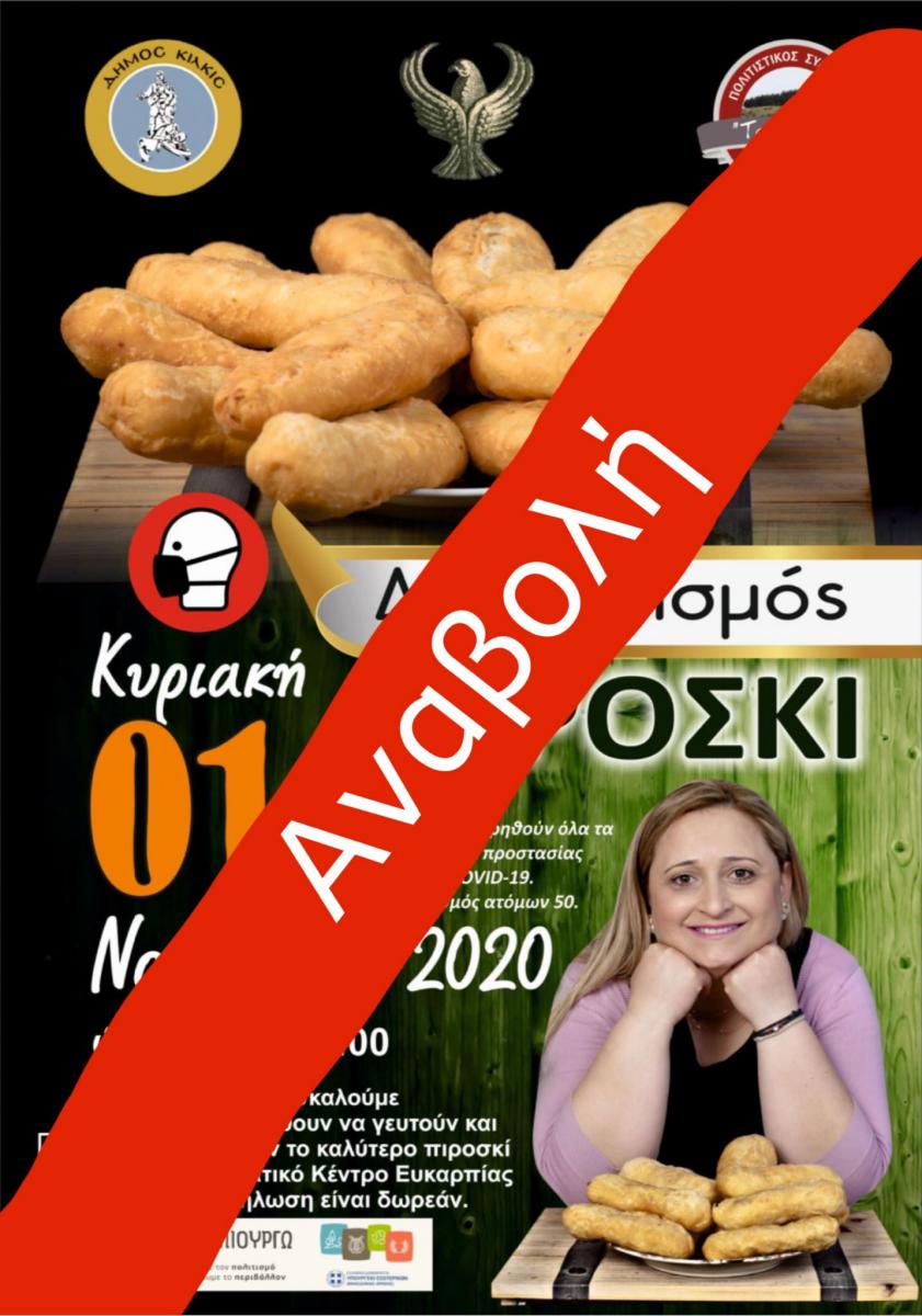 Παρά τις εντατικές προσπάθειες του ΔΣ να διεξαχθεί ο καθιερωμένος πλέον ετήσιος διαγωνισμός πιροσκί του Πολιτιστικού Συλλόγου Ευκαρπίας Κιλκίς «Το λαβάς», οι διοργανωτές αποφάσισαν να ακυρώσουν την εκδήλωση λόγω της έξαρσης του κορονοϊού στη χώρα μας.