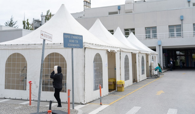 Τέντα έξω από τα επείγοντα του Παπαγεωργίου (φωτ.: ΑΠΕ-ΜΠΕ / Νίκος Αρβανιτίδης)