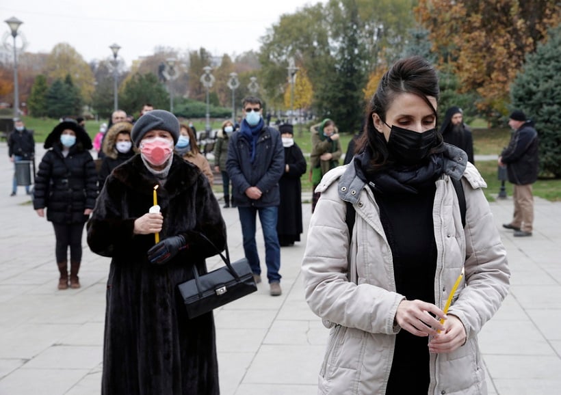 Ορθόδοξοι πιστοί κρατούν κεριά στην κηδεία του Πατριάρχη των Σέρβων Ειρηναίου, στο Βελιγράδι (φωτ.: EPA/ANDREJ CUKIC)
