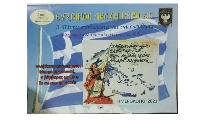 Η Εύξεινος Λέσχη Βέροιας (ΕΛΒ) κάνει γνωστό ότι κυκλοφόρησε το συλλεκτικό ημερολόγιό της (τοίχου) για το έτος 2021, το οποίο είναι αφιερωμένο στα 200 χρόνια από την έναρξη της Ελληνικής Επανάστασης.