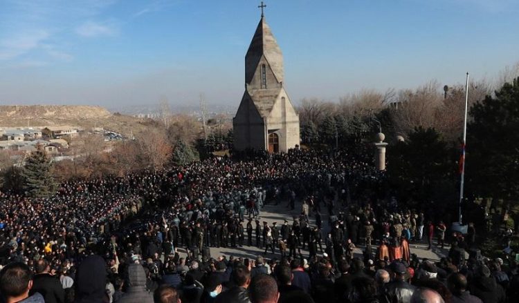 Χιλιάδες Αρμένιοι βγήκαν σήμερα στους δρόμους της πρωτεύουσας Γερεβάν για να τιμήσουν τη μνήμη των στρατιωτών που σκοτώθηκαν στον πόλεμο, διάρκειας 6 εβδομάδων, στο Ναγκόρνο Καραμπάχ, όπου το Αζερμπαϊτζάν κατέγραψε σημαντικά εδαφικά κέρδη.
