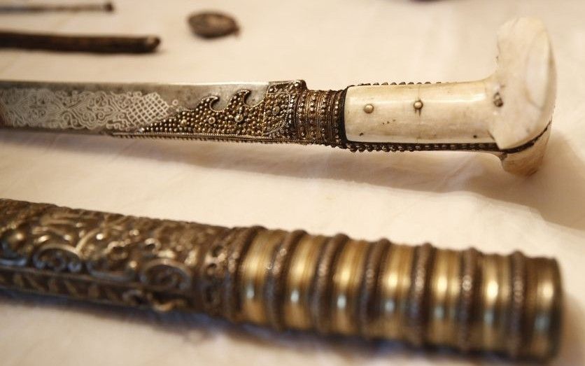 Στην κατοχή του έχει και άλλα αντικείμενα εποχής, όπως ένα μπρούτζινο καλαμάρι με εγχάρακτο φυτικό διάκοσμο, ένα γιαταγάνι του 1800 με οστέινη λαβή και ασημένια σκαλιστή θήκη και μία γκλίτσα με ξυλόγλυπτη λαβή με προτομή αγωνιστή του 1821.