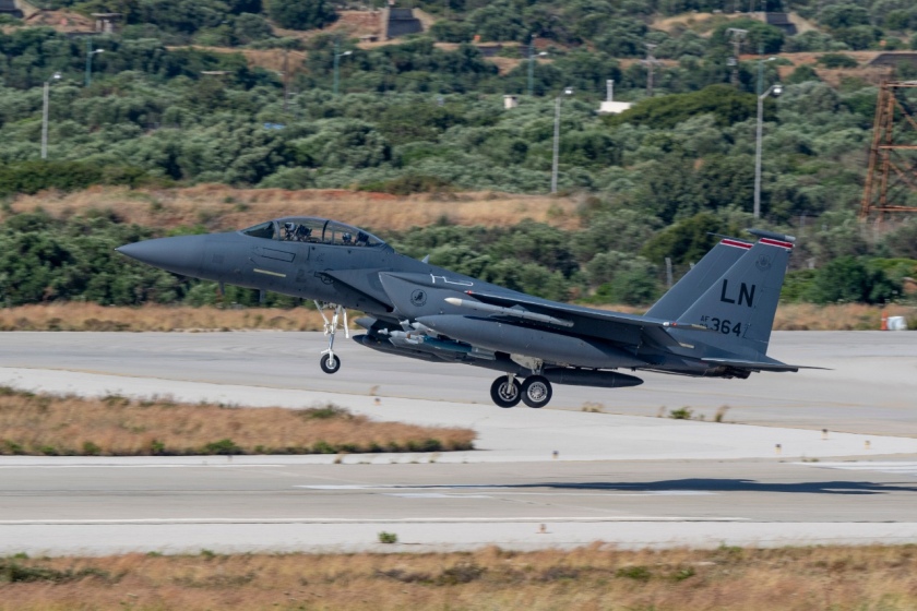 Το αεροπορικό κλιμάκιο των ΗΠΑ, που αποτελείται από προσωπικό και 14 αεροσκάφη F-15E της 492 Fighter Squadrom (FS) της US Air Forces in Europe-USAFE, έχει μετασταθμεύσει στο αεροδρόμιο της Σούδας.