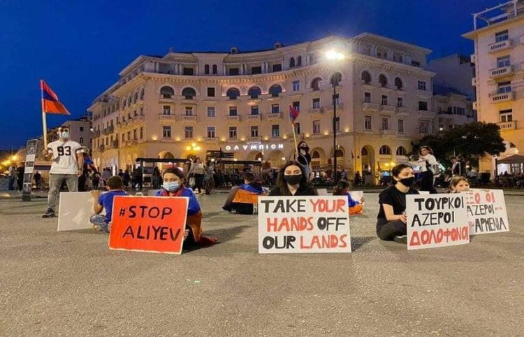 Καθιστική διαμαρτυρία πραγματοποίησαν το βράδυ της Παρασκευής οι Αρμένιοι της Θεσσαλονίκης, διαμαρτυρόμενοι στη διεθνή κοινότητα για τη συνέχιση των εχθροπραξιών από τους Αζέρους σε βάρος της χώρας τους.