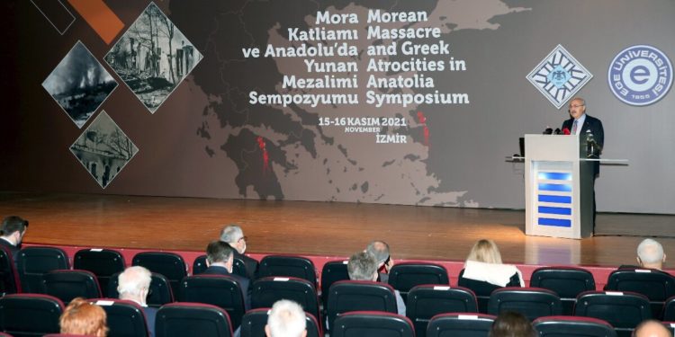 Στο παιχνίδι των προκλήσεων που παίζει η Τουρκία σε βάρος της Ελλάδας εντάσσεται και το συμπόσιο με θέμα «Η σφαγή στον Μοριά και οι ελληνικές αγριότητες στην Ανατολία» που πραγματοποιείται στη Σμύρνη, στο αμφιθέατρο «Κεμάλ Ατατούρκ» με την υποστήριξη του τουρκικού υπουργείου Εξωτερικών. Στο συγκεκριμένο συμπόσιο κατηγορούν την ελληνική πλευρά για σφαγές την εποχή εκείνη.