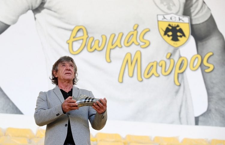 Ο άλλοτε δεινός σκόρερ παρέδωσε για το Μουσείο της ΑΕΚ τα ενθύμια μιας μεγάλης καριέρας, ανάμεσα στα οποία το ασημένιο παπούτσι της Ευρώπης του 1979, αλλά και τη φανέλα με την οποία αγωνίστηκε με τη Μικτή Κόσμου και μίλησε στην κάμερα του AEK TV.