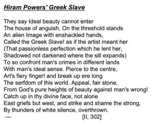 Στο μουσείο του Μπρούκλιν, στις ΗΠΑ, εκτίθεται το άγαλμα «Η Ελληνίδα δούλη», το πρώτο εξ ολοκλήρου γυμνό γλυπτό που φιλοτεχνήθηκε στην Αμερική (ολοκληρώθηκε το 1844). Απεικονίζει μια νεαρή γυναίκα δεμένη με αλυσίδες, στο δεξιό χέρι της οποίας διακρίνεται ένας μικρός σταυρός.