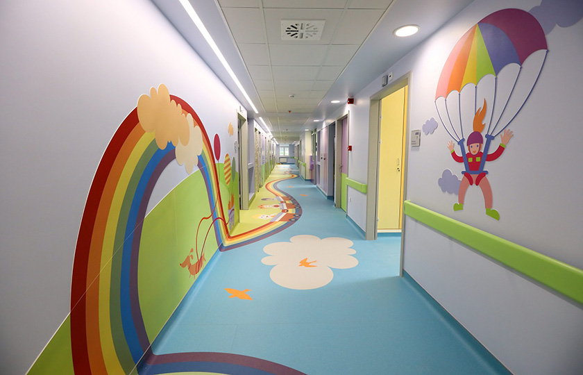 Στις νοσηλευτικές μονάδες τους, που είναι διεθνών προδιαγραφών, ζεστές και φιλόξενες, οι διακοσμητικές παρεμβάσεις και τα ζωηρά χρώματα στους τοίχους και τα πατώματα δημιουργούν ευχάριστο θεραπευτικό περιβάλλον για τα παιδιά.