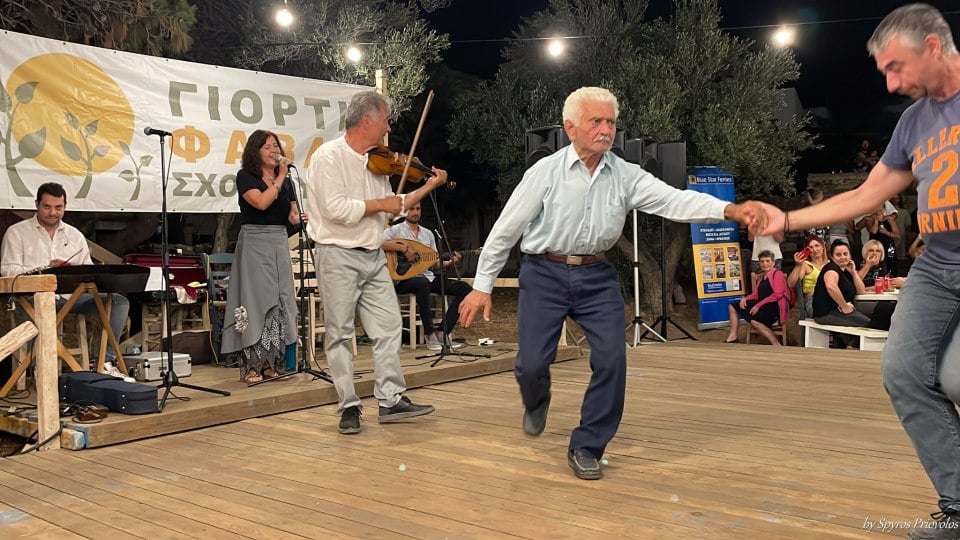 «Ο κ. Γιώργος Κωβαίος, 89 ετών χορεύει με την εγγονή του Ποθητή στην 9η γιορτή Φάβας στη Σχοινούσα. Τον συναντήσαμε την επόμενη ημέρα γεμάτο χαρά να μας λέει για το πόσο τον γεμίζει το νησί του. Απλός καθαρός φιλόξενος νησιώτης. Πρότυπο και έμπνευση για όλους μας. Μόνο σεβασμός», σημειώνει το προφίλ Rizes στο Facebook που έκανε κοινοποίηση του βίντεο από το προφίλ του Γιάννη Εξιλζέ.