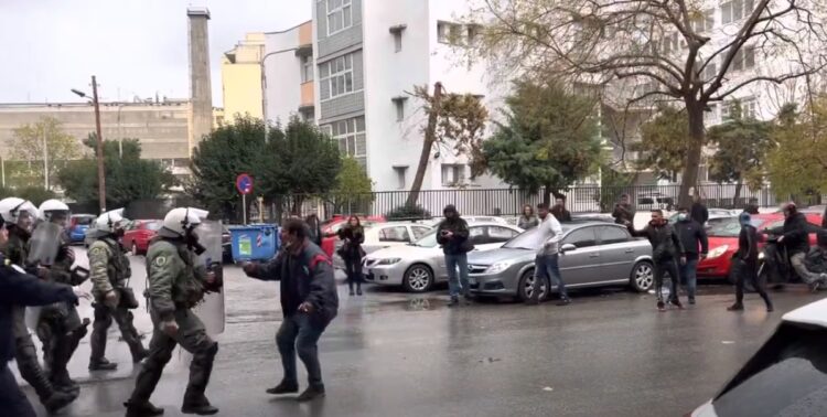 Ορισμένοι από τους συγγενείς και τους φίλους του 16χρονου, ο οποίος νοσηλεύεται σε κρίσιμη κατάσταση μετά από επέμβαση, κατά την οποία αφαιρέθηκε σφαίρα από το κεφάλι του, βγαίνοντας από το νοσοκομείο κινήθηκαν προς τις αστυνομικές δυνάμεις στην οδό Κωνσταντινουπόλεως και άρχισαν να πετούν προς το μέρος τους καρέκλες από τα γειτονικά καταστήματα, πλαστικά τάσια από τροχούς αυτοκινήτων και άλλα αντικείμενα. Οι αστυνομικές δυνάμεις απάντησαν κάνοντας περιορισμένη χρήση χημικών.