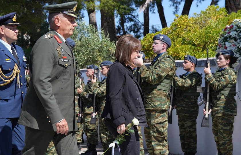 Στο ναό Αγίων Σεργίου και Βάκχου δίπλα στους συντετριμμένους συγγενείς και φίλους στάθηκε η Κατερίνα Σακελλαροπούλου, εμφανώς συγκινημένη. Παρών και ο αρχηγός ΓΕΕΘΑ, στρατηγός Κωνσταντίνος Φλώρος.