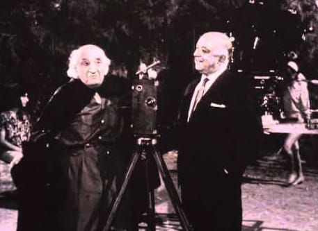 Kρατώντας ένα πούρο στο χέρι, δίπλα σε μια παλιά κάμερα λήψεως, ο Αλέκος Σακελλάριος τον παρουσιάζει και εκείνος απαντά με τη χαρακτηριστική του φωνή.