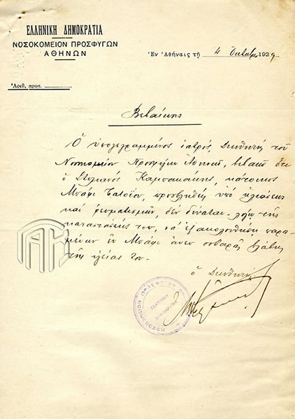 Η Μικρασιατική Καταστροφή του 1922 και η άφιξη εκατοντάδων χιλιάδων Μικρασιατών προσφύγων στην Αθήνα και τον Πειραιά καθιστούσε επιτακτική την επίλυση των ζητημάτων περίθαλψής τους και την ενίσχυση των υγειονομικών δομών της χώρας. Στο πλαίσιο αυτό, με βασιλικό διάταγμα στα τέλη Ιουλίου του 1923 ιδρύθηκε το Νοσοκομείο Προσφύγων Αθηνών «δια την θεραπείαν προσφύγων και απόρων ιδιωτών πασχόντων εκ κοινών νοσημάτων».