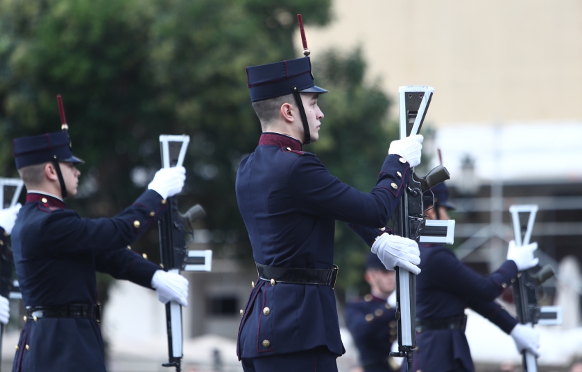 Με επιδέξιες κινήσεις, κρατώντας στα χέρια τα όπλα τους, σε αρμονικό συγχρονισμό και άψογους σχηματισμούς, οι σπουδαστές της Στρατιωτικής Σχολής Αξιωματικών Σωμάτων (ΣΣΑΣ), εντυπωσίασαν το πλήθος του κόσμου, που παρά τον άστατο καιρό, κατέκλυσε την πλατεία Αριστοτέλους, το πρωί της Πέμπτης στη Θεσσαλονίκη.