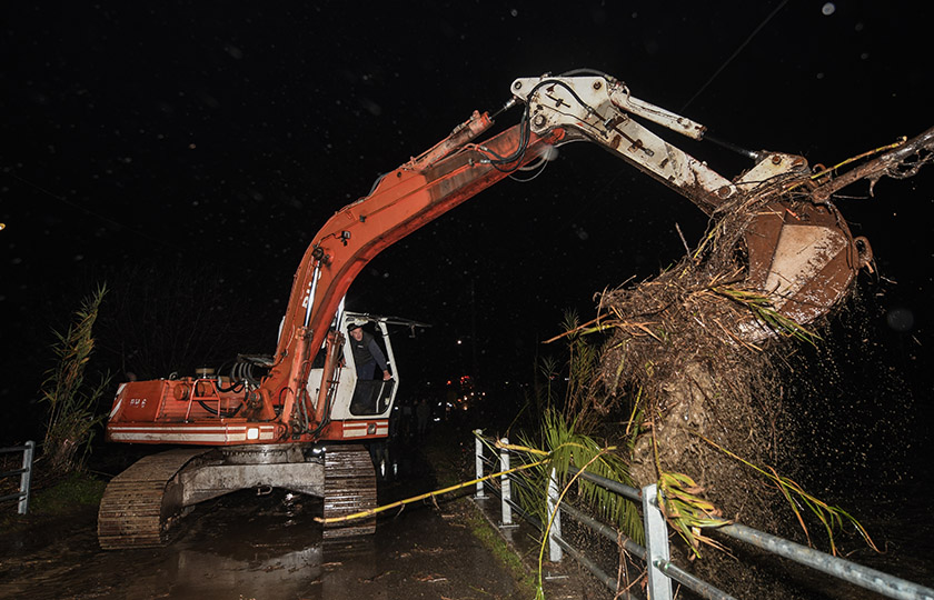 Μηχάνημα έργου στη γέφυρα στην είσοδο του χωριού (φωτ.: ileialive.gr / EUROKINISSI / Ηλίας Σπυρούνης)