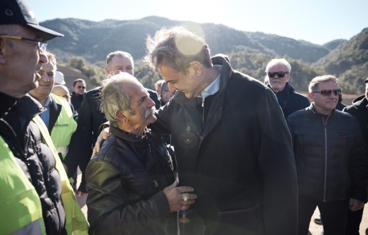 Ο Κυριάκος Μητσοτάκης (δεξιά) κατά την τελευταία επίσκεψή του στην Αμφιλοχία (φωτ.: Γραφείο Τύπου Πρωθυπουργού/Δημήτρης Παπαμήτσος)