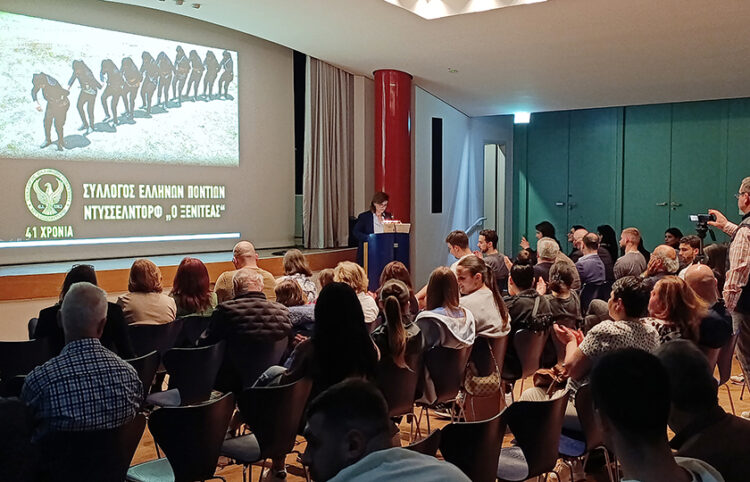 Η εισηγήτρια Αλεξία Ιωαννίδου, αφού ευχαρίστησε τον πρόεδρο και το ΔΣ του συλλόγου του Ντίσελντορφ για την πρόσκληση και τη φιλοξενία, αναφέρθηκε στη σημαντική βοήθεια της ομογένειας, και δη των συλλόγων της Γερμανίας που αγκάλιασαν την προσπάθεια από την αρχή.