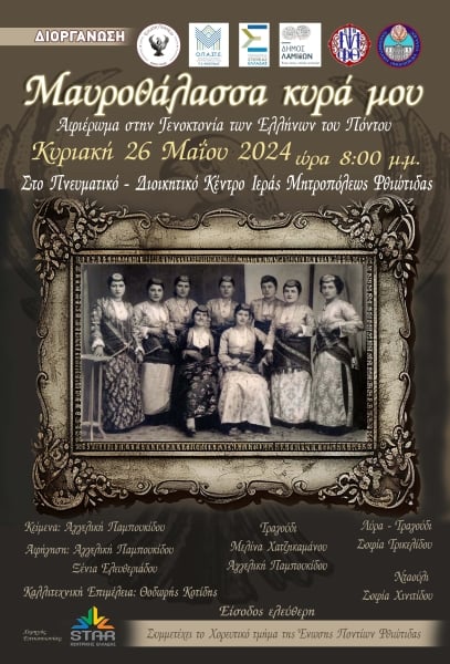 Αφιέρωμα στην Γενοκτονία των Ελλήνων του Πόντου οργανώνει την Κυριακή, 26 Μαΐου, στη Λαμία, η Ένωση Ποντίων Φθιώτιδας, με τίτλο «Μαυροθάλασσα Κυρά μου».