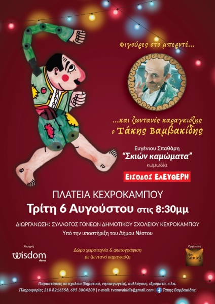 Τον Καραγκιόζη θα ερμηνεύσει ο επί πολλά χρόνια μαθητής του μεγάλου Ευγένιου Σπαθάρη Τάκης Βαμβακίδης, και η είσοδος για το κοινό θα είναι ελεύθερη.